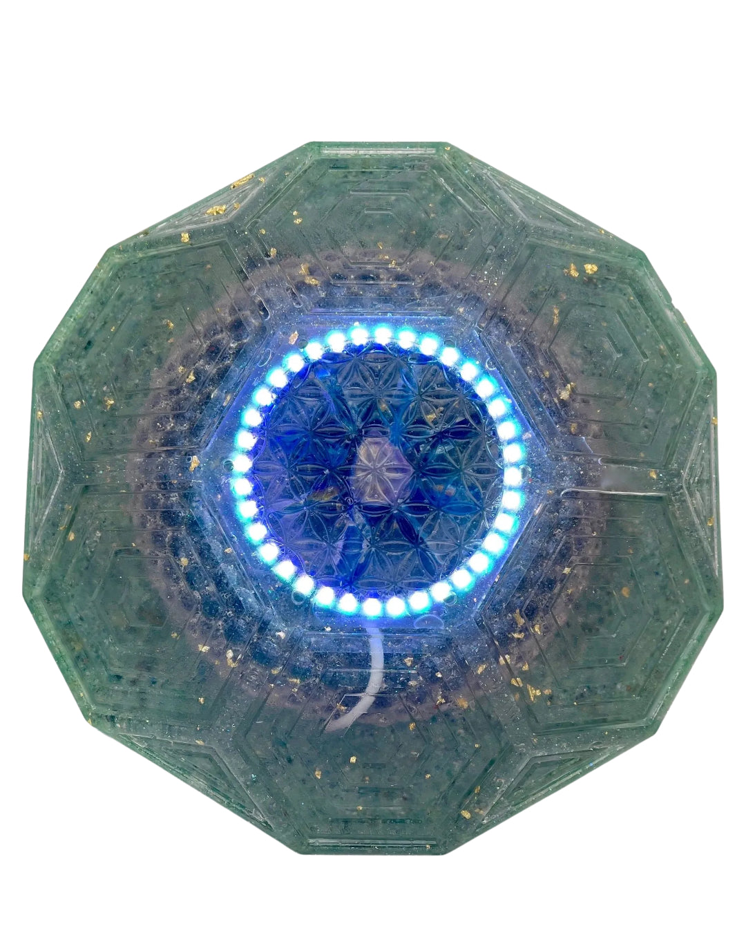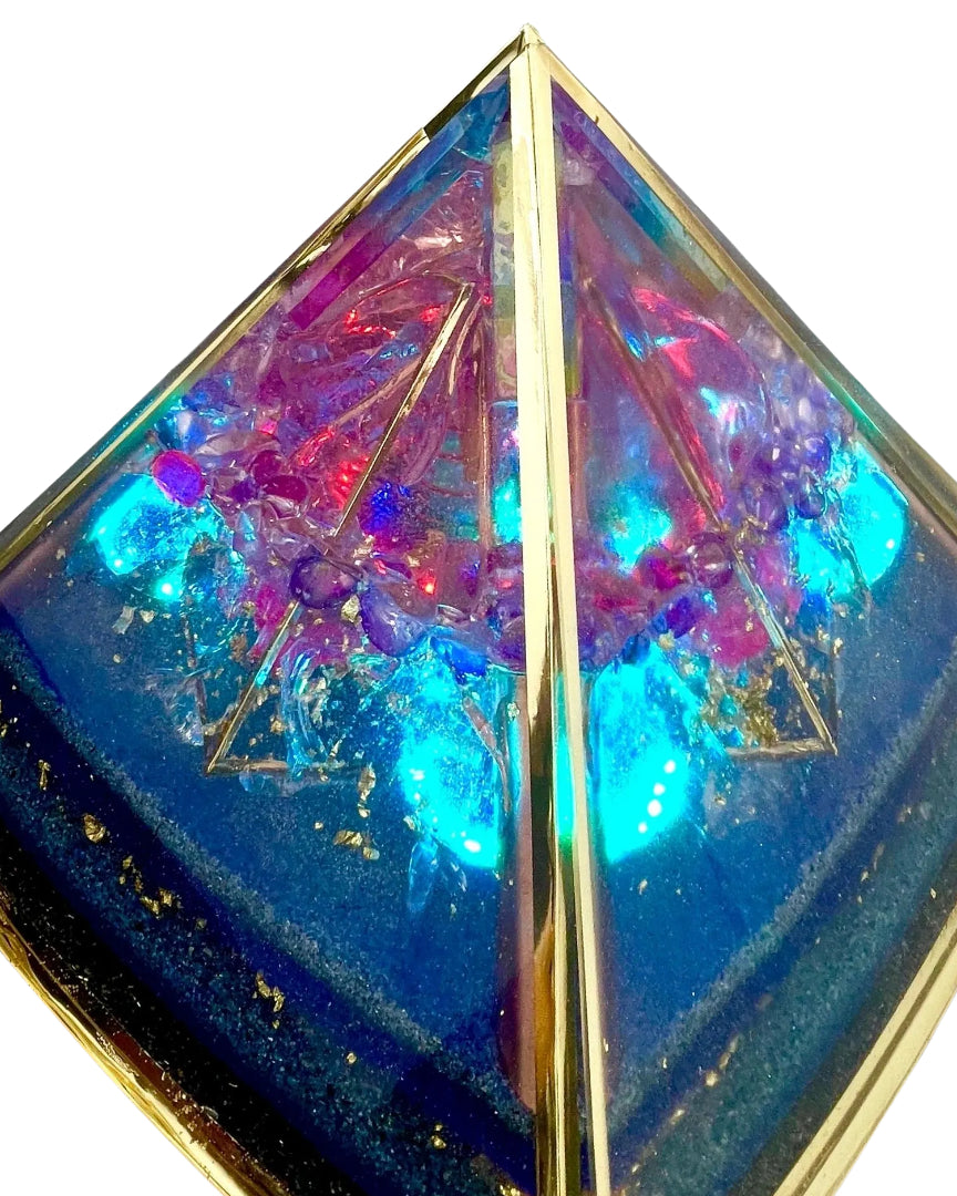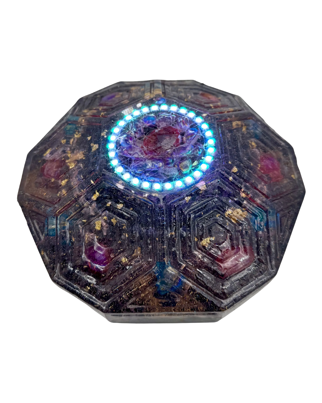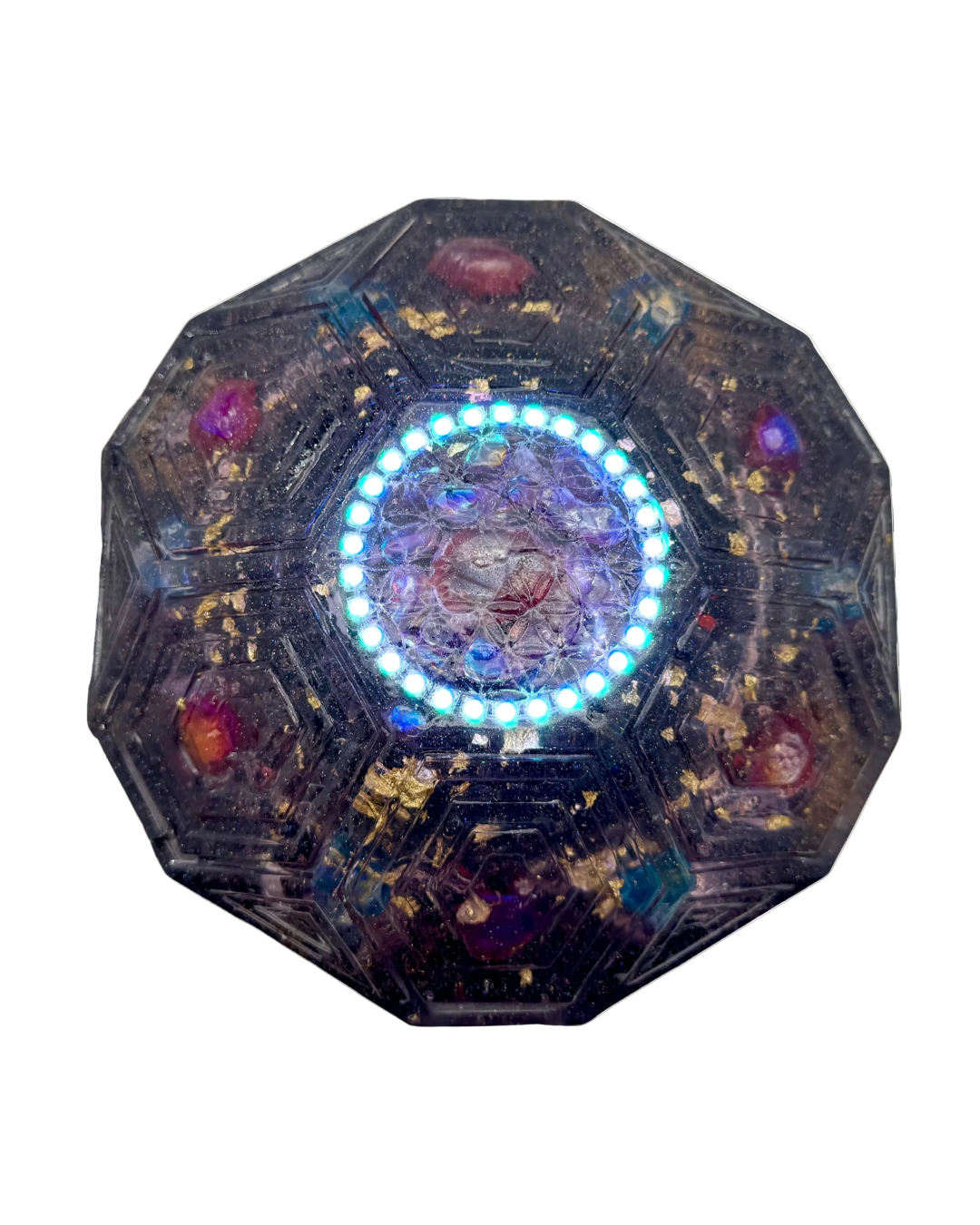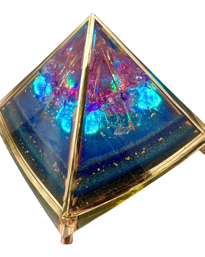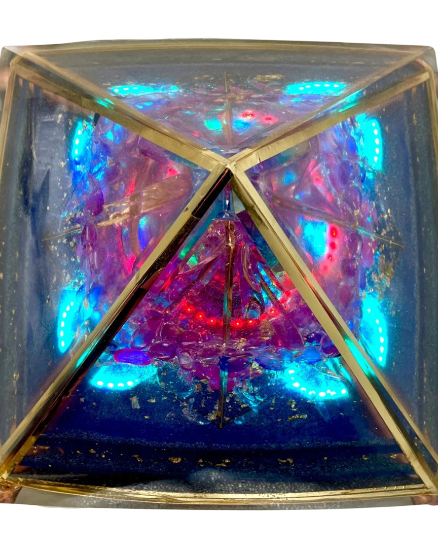 The Super Seven 8-Sided Nubian Pyramid comes fully equipped with multiple LED Lights, a power supply and remote control. The BMW LED Halo Lights Promote Greater Dynamic Range and Field Strength of the Alchemy found within. Thus, Amplifying and Empowering the natural properties of each Crystal and Precious Stone. Not only does the 8-Sided Nubian protect you from bombardment of WiFi, Smart Meters, Cell Phone Towers, etc., but it also assists in Third Eye Development, Throat Chakra Activation, Out of Body Experience, Dream Time lucidity and recall, Astral Travel, and Multidimensional Connectivity.