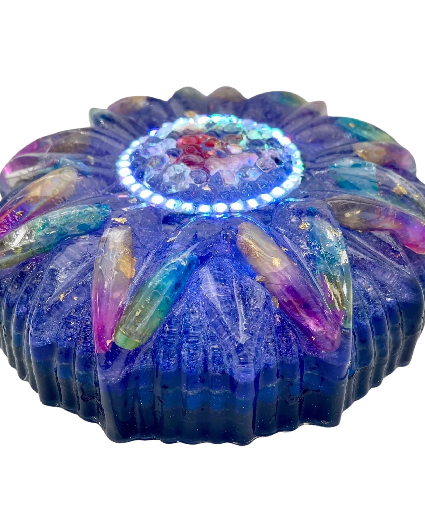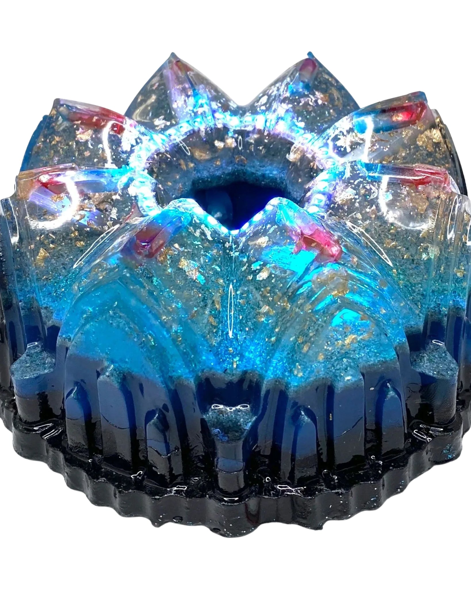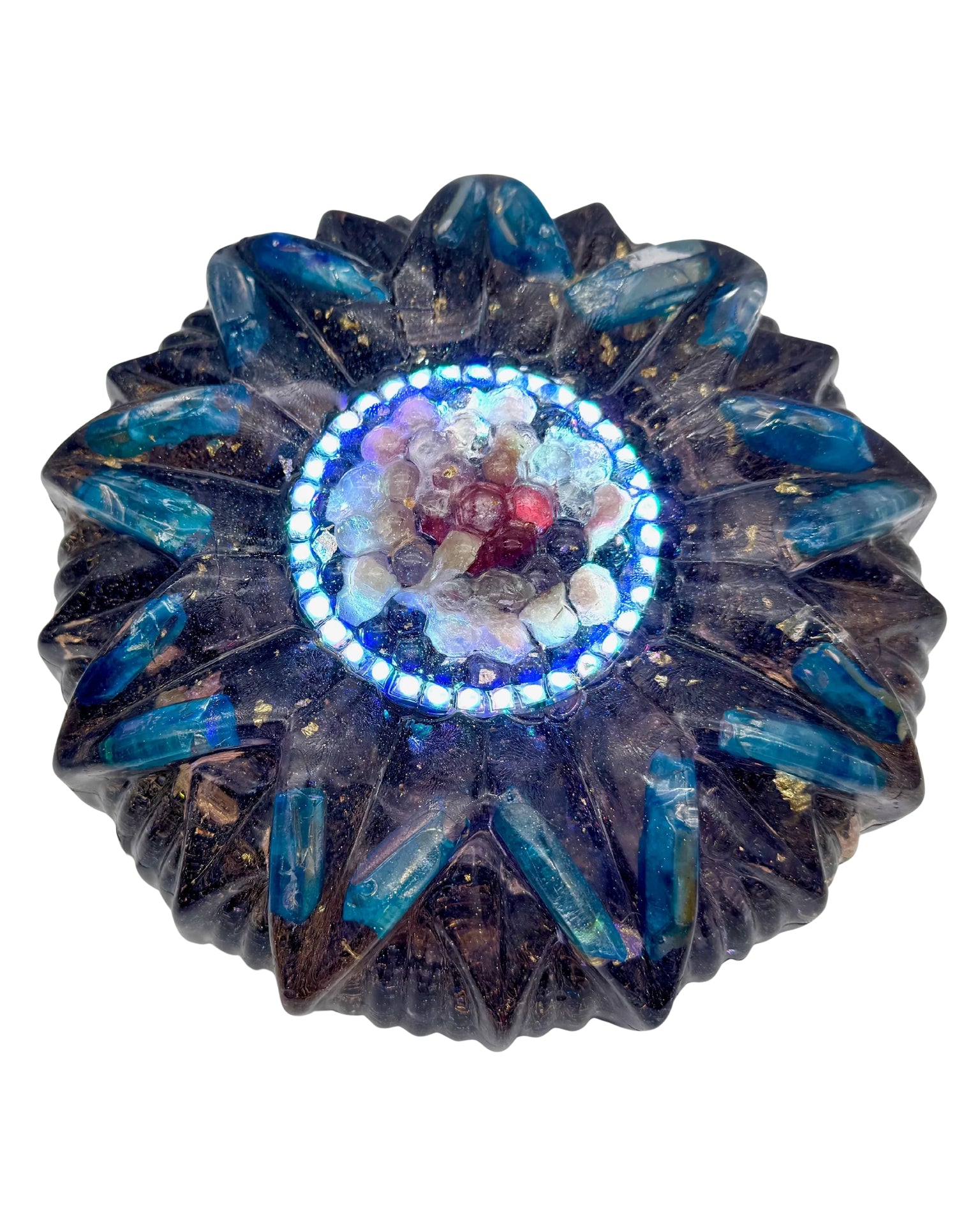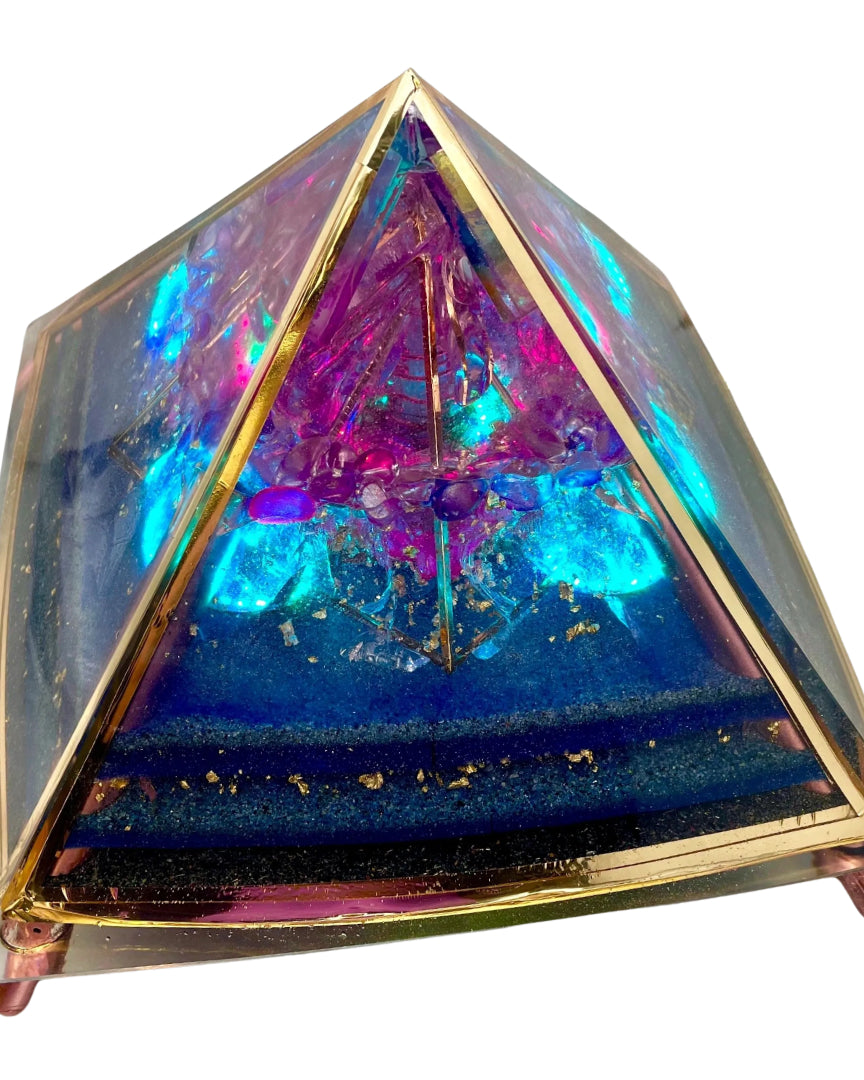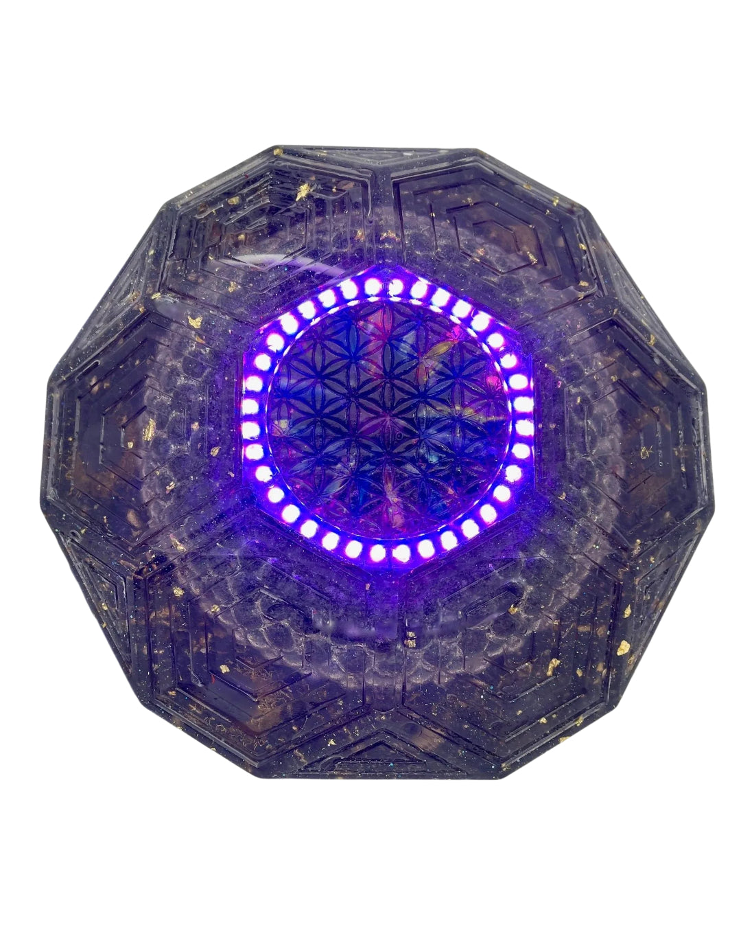 The Super Seven 8-Sided Nubian Pyramid comes fully equipped with multiple LED Lights, a power supply and remote control. The BMW LED Halo Lights Promote Greater Dynamic Range and Field Strength of the Alchemy found within. Thus, Amplifying and Empowering the natural properties of each Crystal and Precious Stone. Not only does the 8-Sided Nubian protect you from bombardment of WiFi, Smart Meters, Cell Phone Towers, etc., but it also assists in Third Eye Development, Throat Chakra Activation, Out of Body Experience, Dream Time lucidity and recall, Astral Travel, and Multidimensional Connectivity.