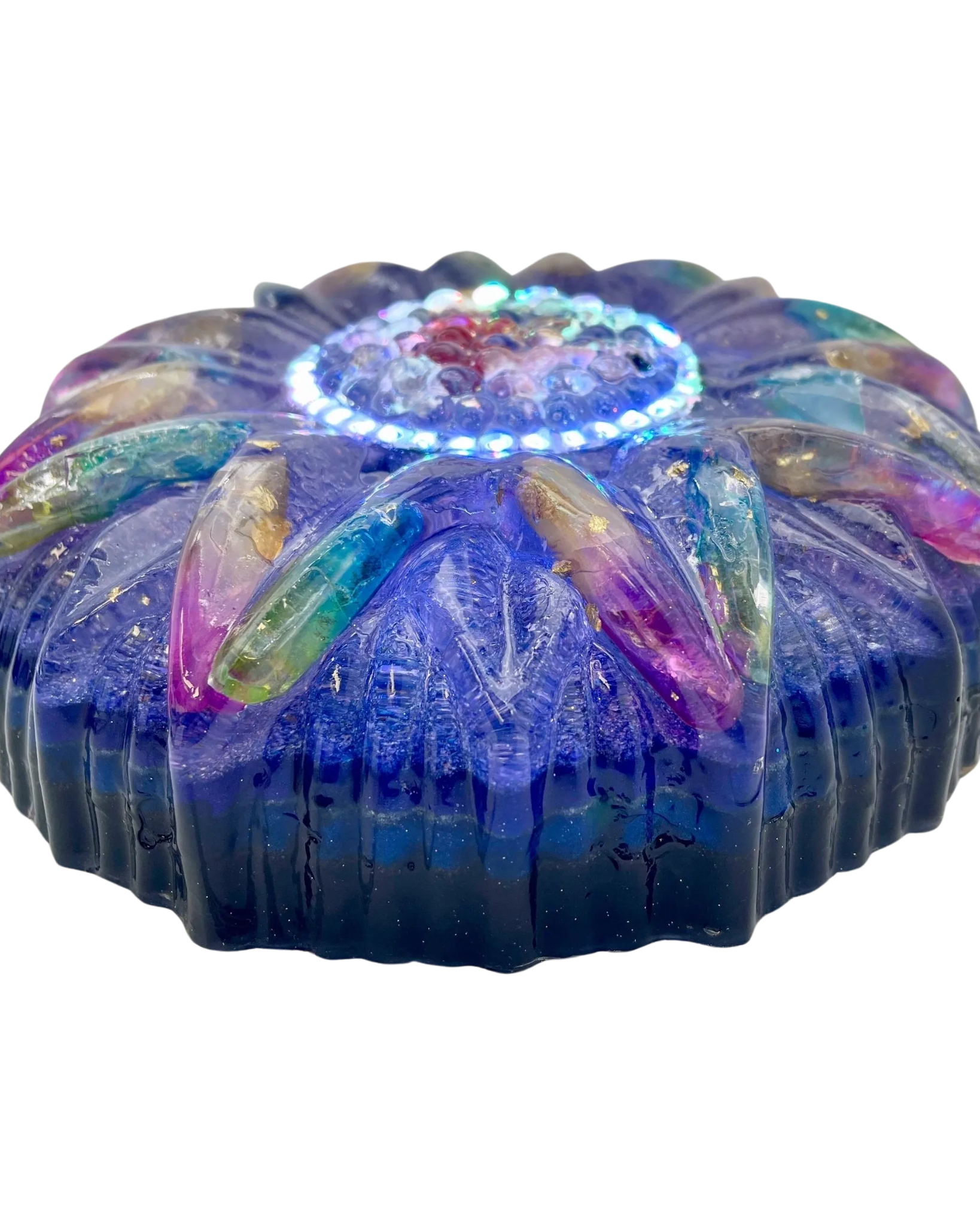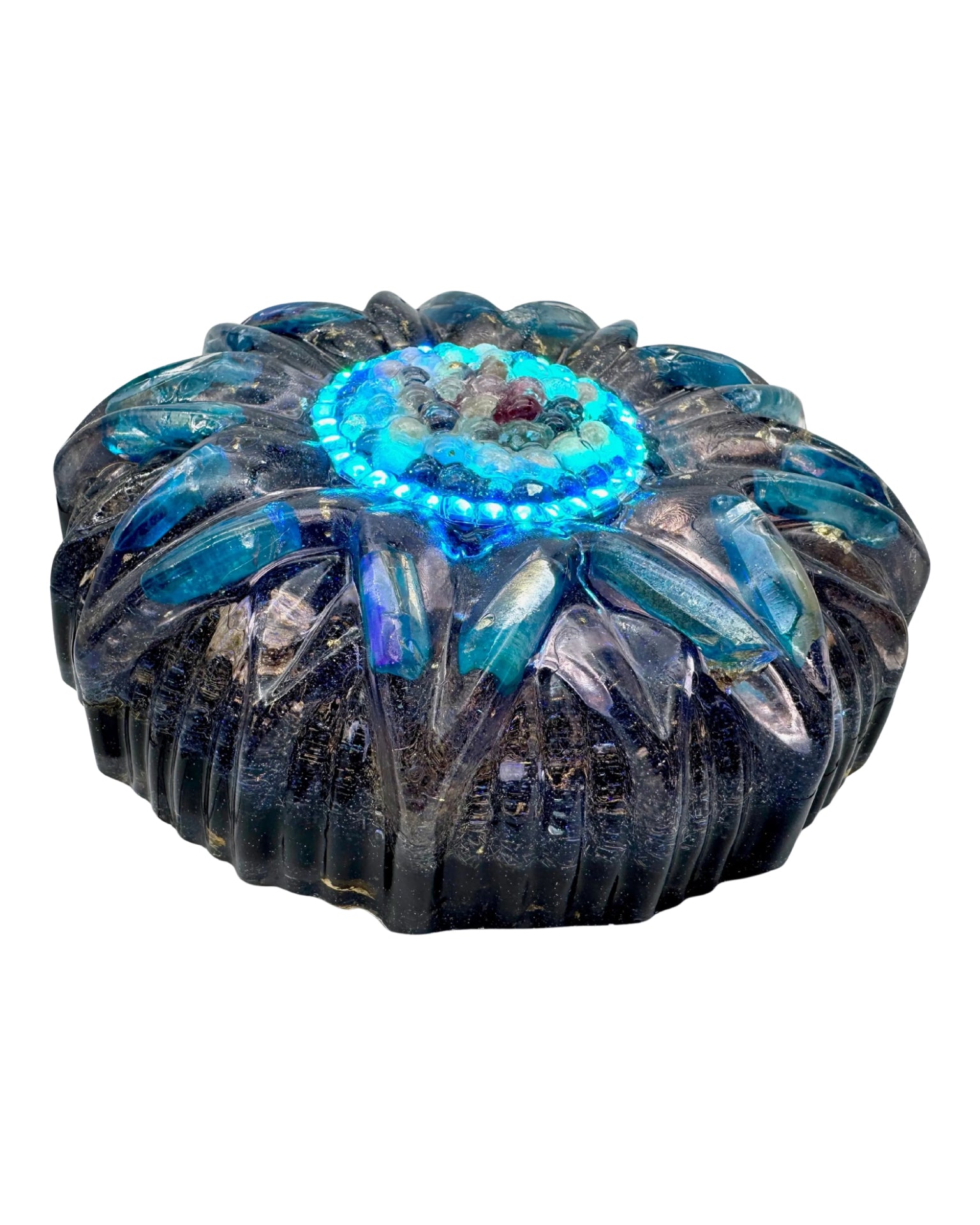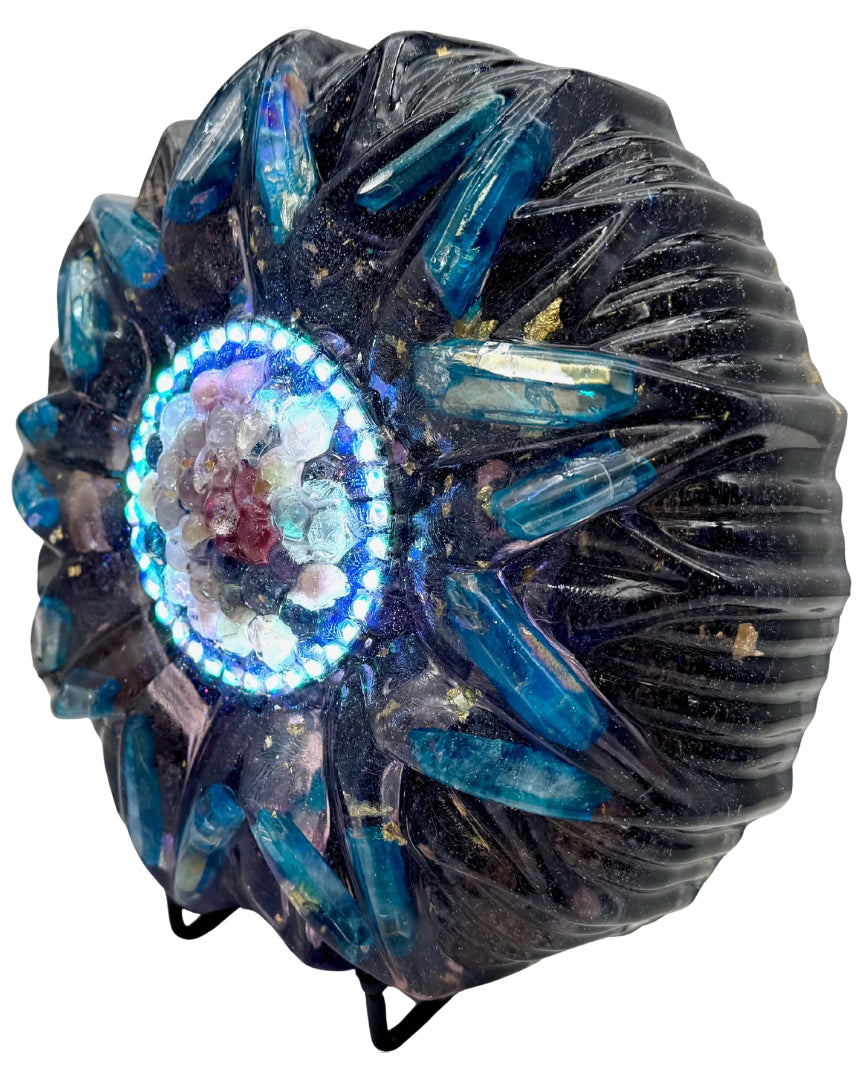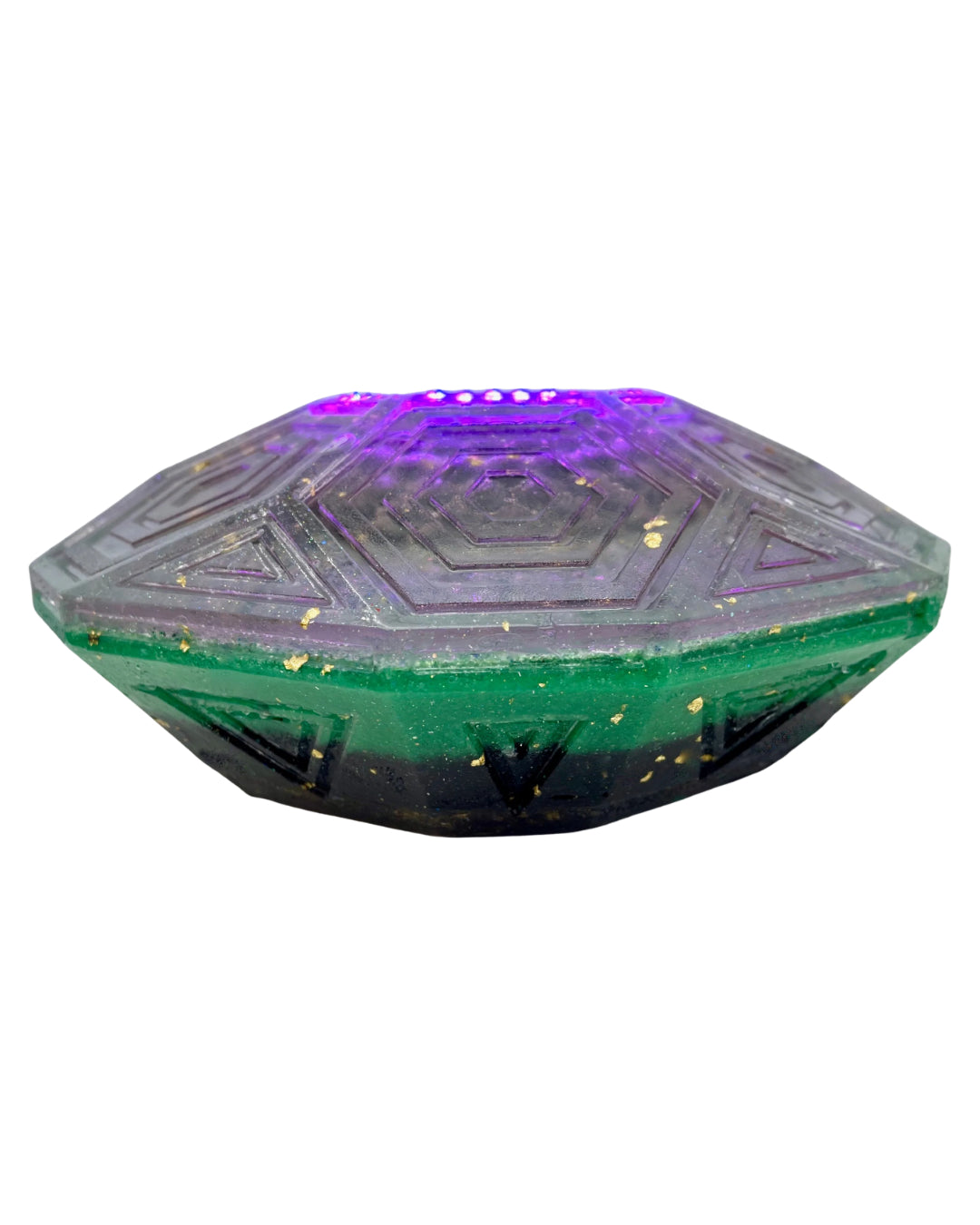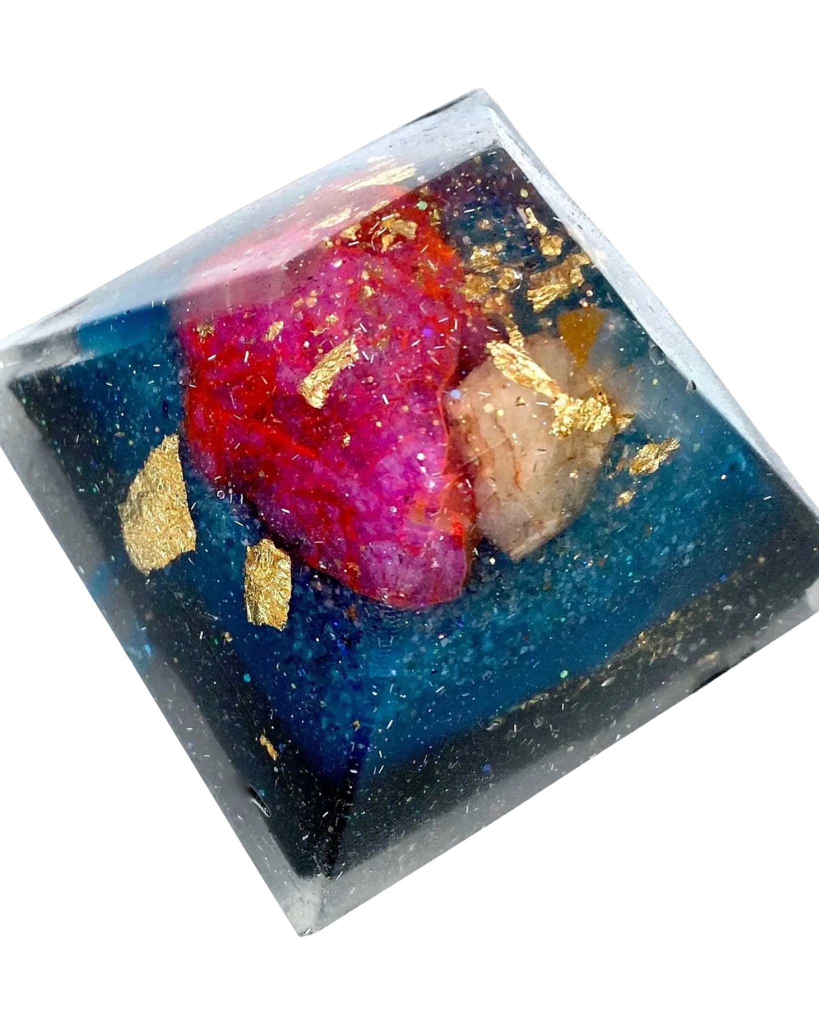 While Orgone Energy is what the Ancients have called Prana, Chi, or Universal Energy; Orgonite is the process of layering intentional materials to harness and expand this vital Life Force. A crystal matrix is locked in an amplified state of its own frequency, while the encased metals filter out negative frequencies.