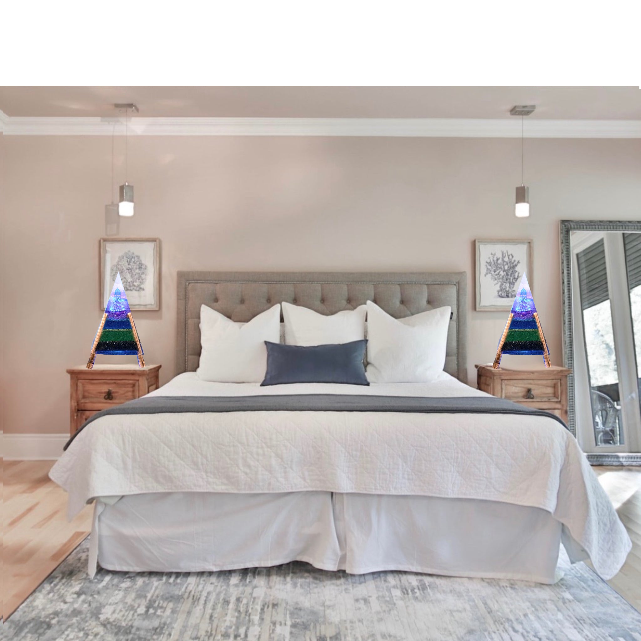 Welcome to the full enchilada! This 8~Sided Super Seven Nubian Pyramid comes fully equipped with all the PEMF and orgone Powered Poles bells and whistles! Specifically crafted for Healing, Activation, Creativity, and Protection, this Pyramid is perfect for Lightworkers developing Ascension and Healing Centers, or for experiencing the Ultimate Meditation Throne in your home! This pyramid utilizes PEMF technology- allowing any desired tone or vibration to play through the pyramid. Enjoy accelerated healing and deeper meditation with this leading edge design!