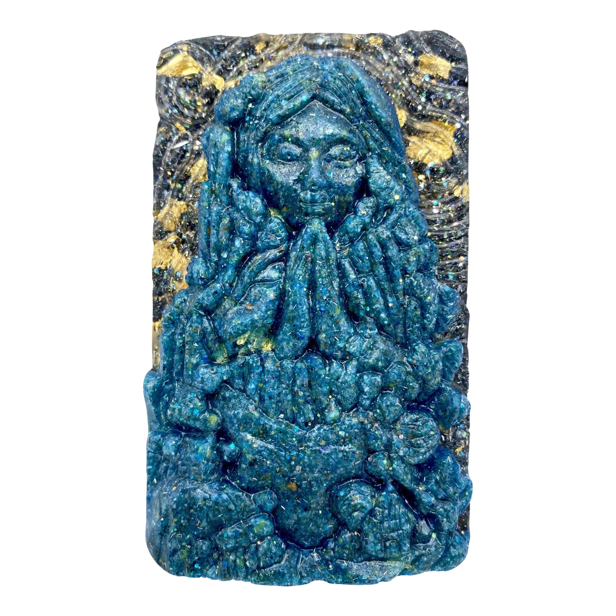 Clearing the deck properly is paramount in receiving/giving accurate information, so we created a crystal alchemy that helps to do just that! Each are comprised of varying High Frequency components including; Certified 24K Gold, Aqua Aura, Angelic Quartz, Blue Azurite, Fulgurite (Stones struck by Lightning from Thunder Mountain), Sodalite, Rhodonite, Titanium Quartz, Adventurine, Shungite, Black Tourmaline, Iron Oxide, Titanium Oxide, Payson Diamonds, Amethyst, and Selenite.