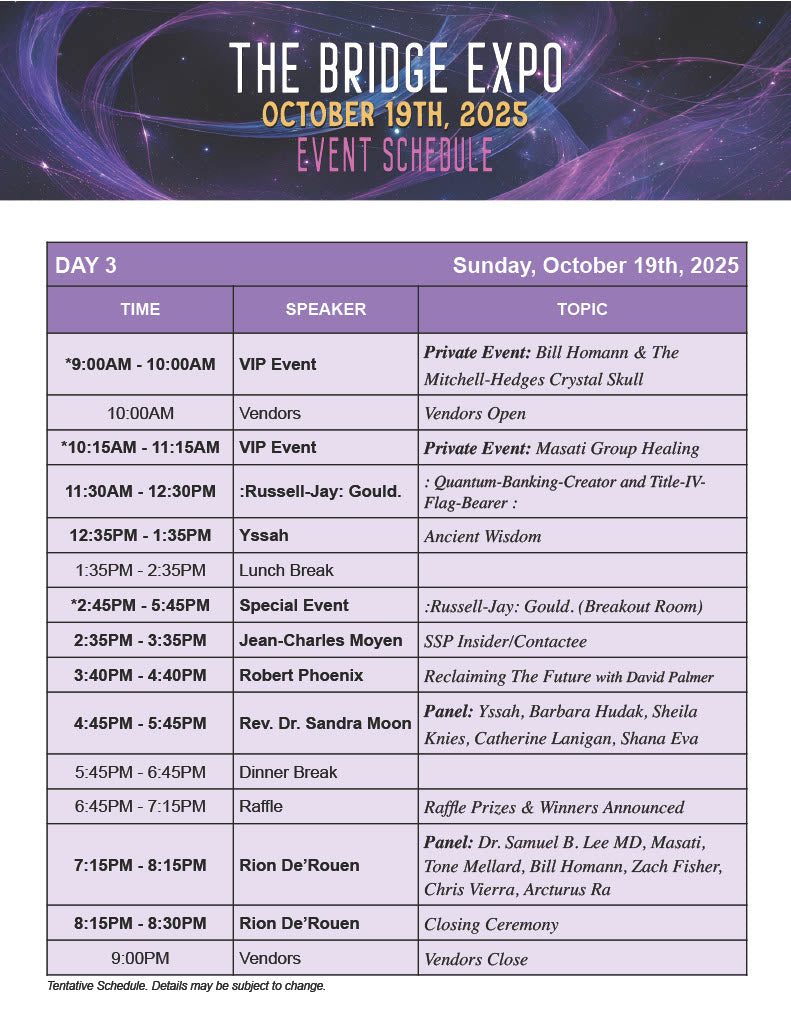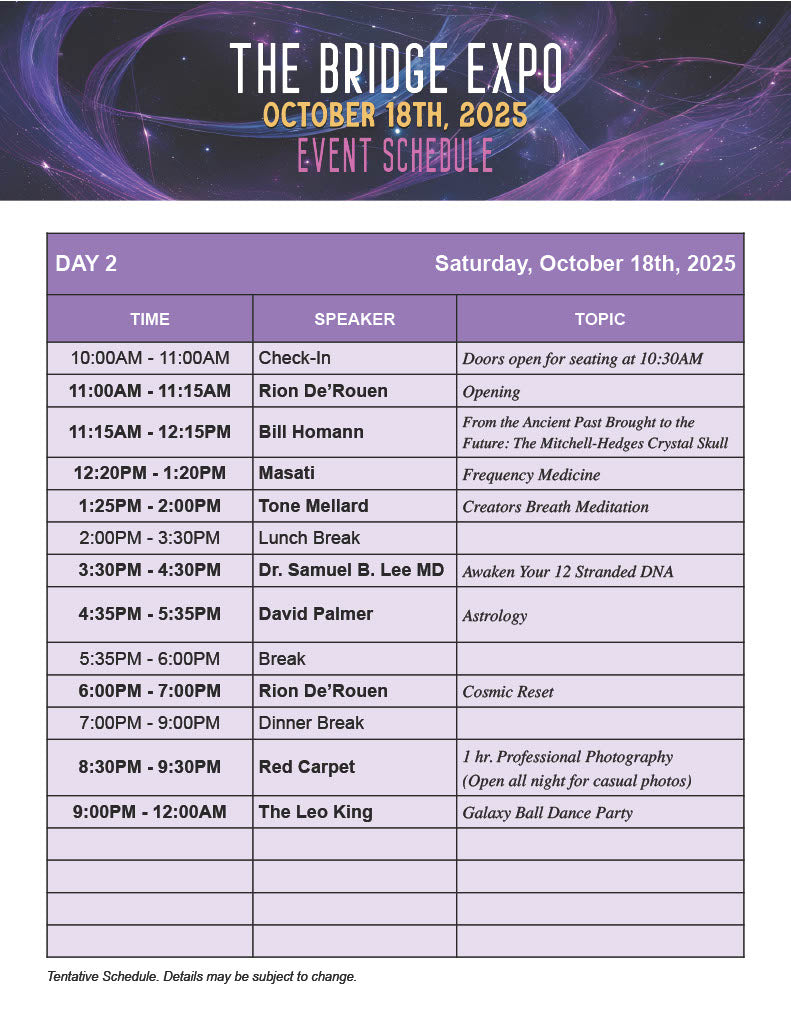 - 9AM-10AM - Bill Homann and The Mitchell-Hedges Crystal Skull Group Showing