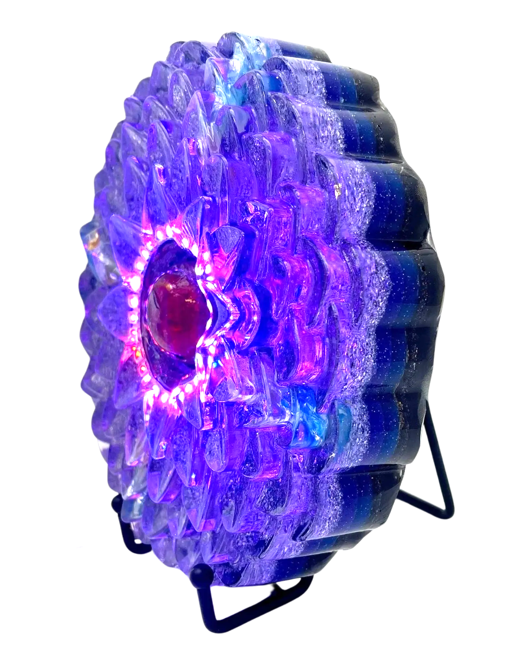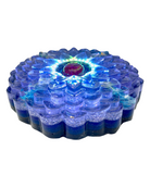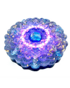 The Lotus of Light sizes up at around 7" in diameter and is made with the finest monotonically bonded crystals on Earth. Aqua Aura, Rose Gold, and Angelic quartz are combined to create new spectra of Light not found in any other light devices. This is done by a process which binds 24k gold molecularly to the quartz. The light it emits reminds me of the light spectra found in 5D. Including Crystals and Precious Stones to assist in 3rd eye development, throat Chakra activation, and greater awareness of dreams, and energetic environment.