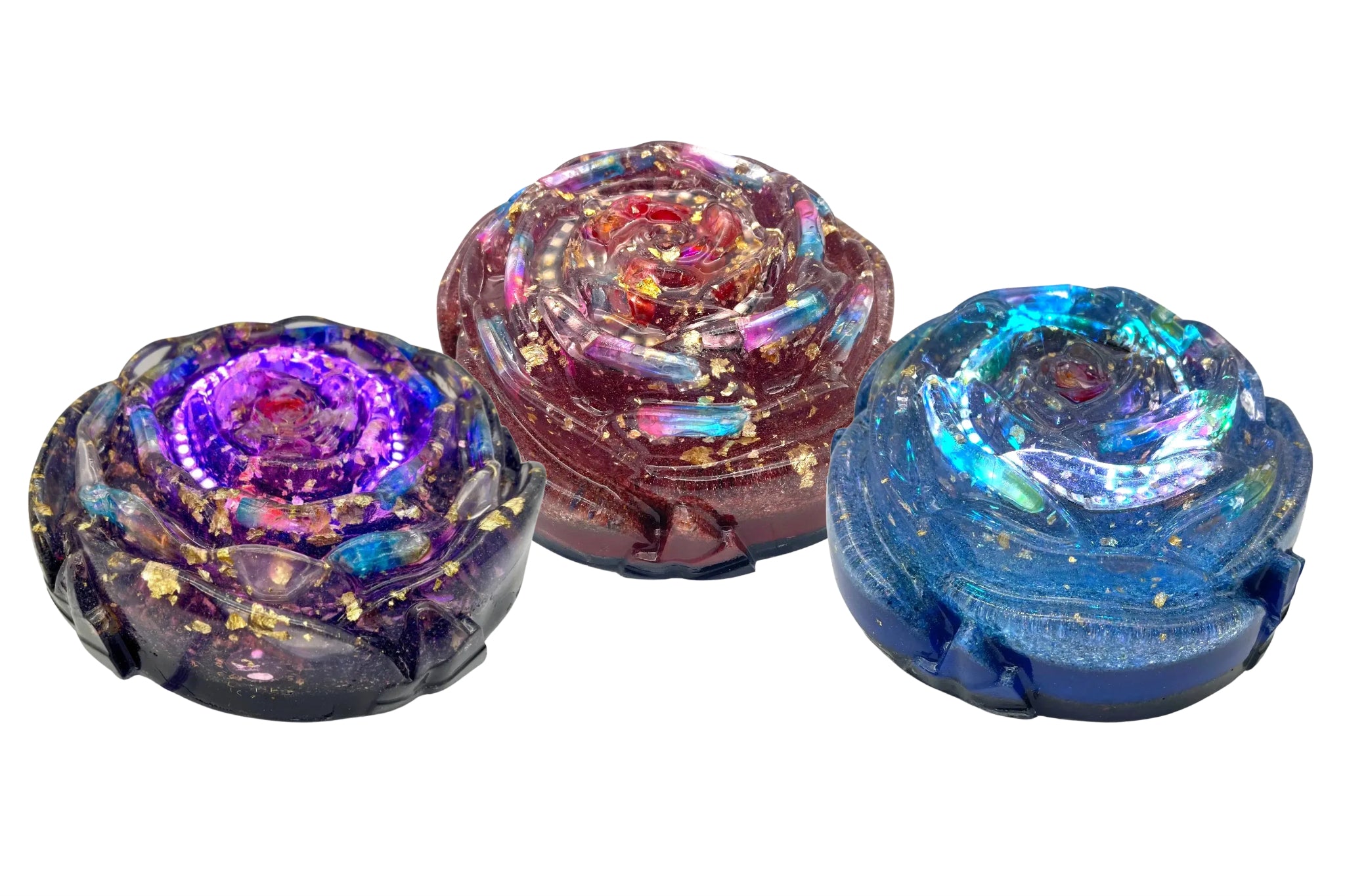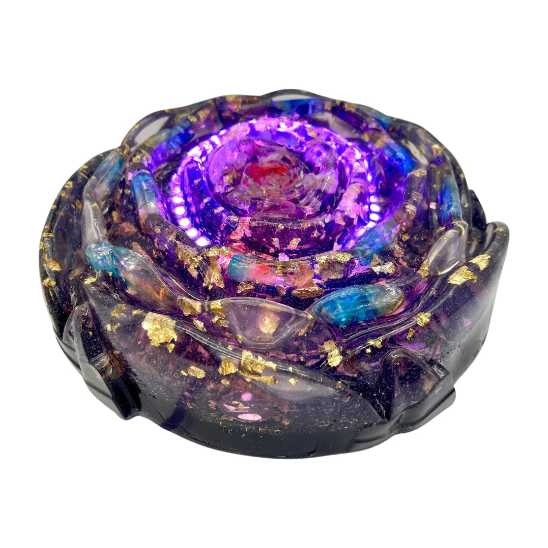 Each Rose features a BMW 6 Series LED Angel Halo Light to Promote Greater Dynamic Range and Field Strength of the Alchemy found within. Package includes a U.S.A. Standard Power Supply with remote control for achieving various color spectra and light modes.