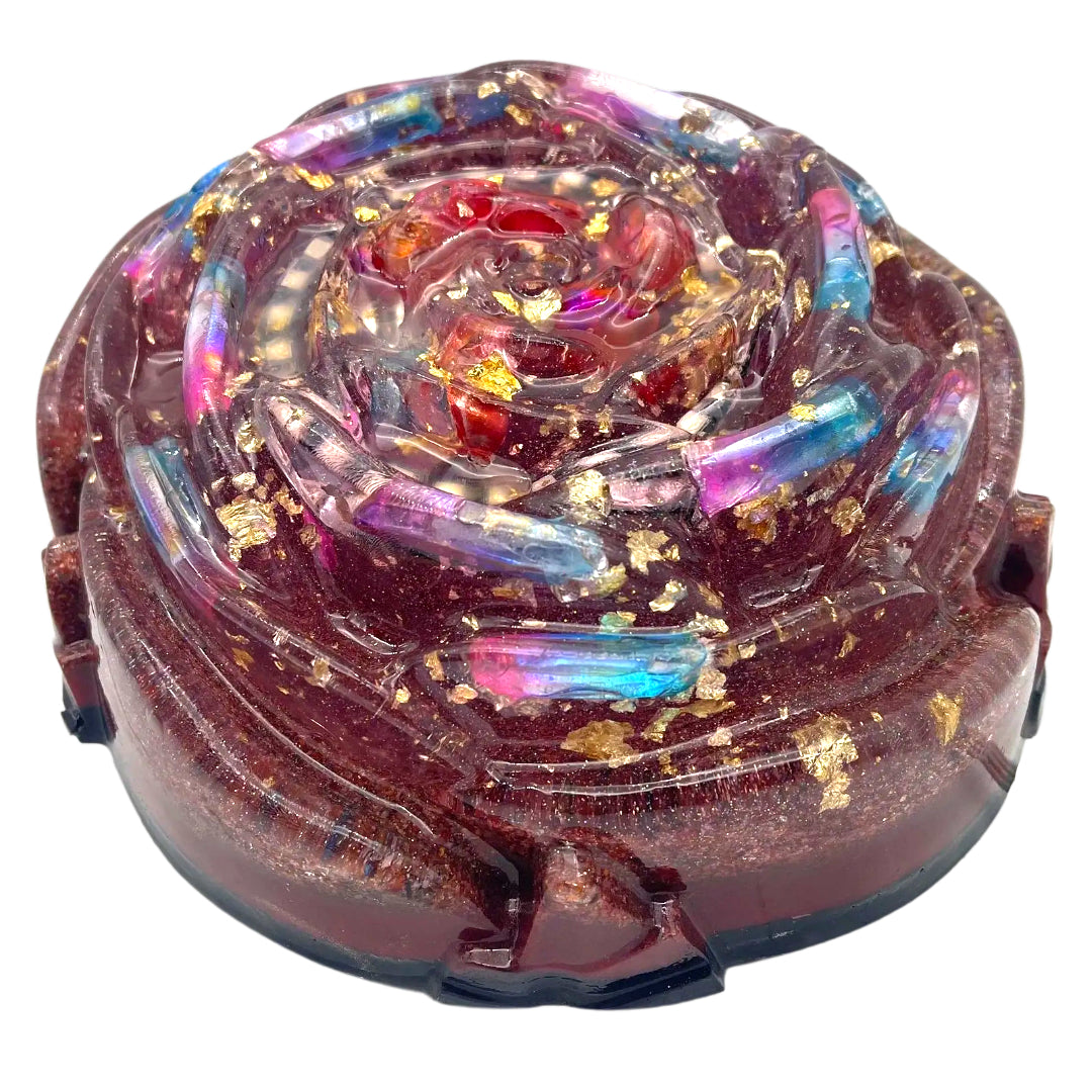 The Sacred Rose's Generator component creates a toroidal field and by placing an offering on the center of it, you are calling more of whatever that is to flow to you. Any offering you make will work as a symbol for Creation and no flower is more universally coveted than the Rose. This sacred floral holds one of the highest vibrational frequencies in plants. Just a whiff of its essence has the ability to stimulate nerve cells and trigger electrical impulses in the brain.
