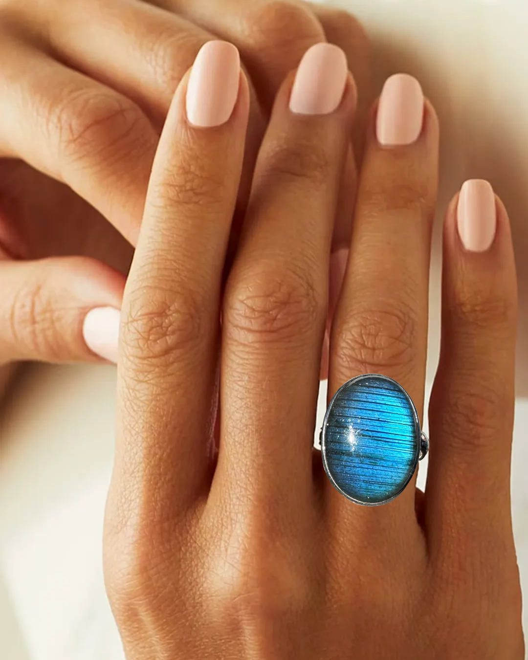 *Labradorite is an iridescent stone that shifts color depending on lighting.*