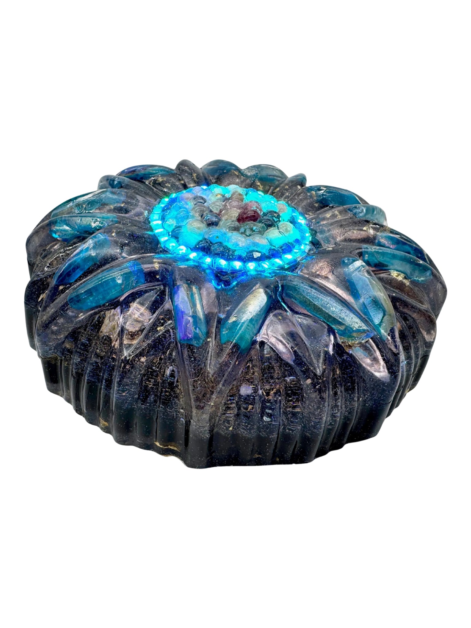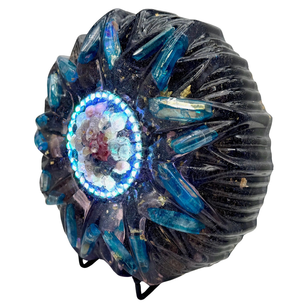 The Sundial Abundance Generator was inspired by an interest and desire to create a device with the right alchemy and power to accelerate abundance in all forms. After a year of development and intentional co-creation, we experienced marketable shifts and received corroborative feedback on just how supportive this generator can be. The toroidal field design allows for an interactive way of calling things/experiences to you. And including the Blue Azurite, made it a whole different ball game. As the Azurite clears and stimulates your Third Eye, so too do your visions enhance, thus maximizing your co-creation with the Alive Field.